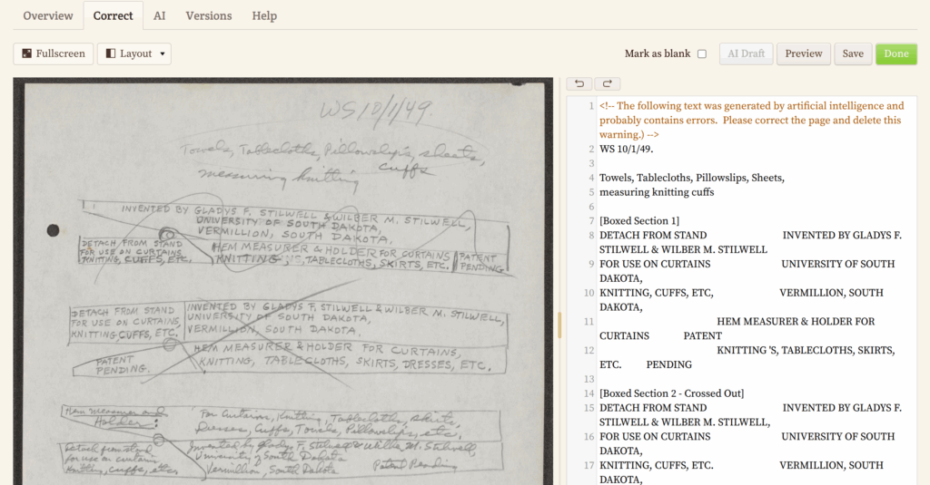 I’d encourage you to try your own experiment – start a 200 page trial by uploading a zip file of images or PDFs (or importing a IIIF manifest) and checking the “generate AI Drafts with Gemini” box. And please, let us know what you discover!